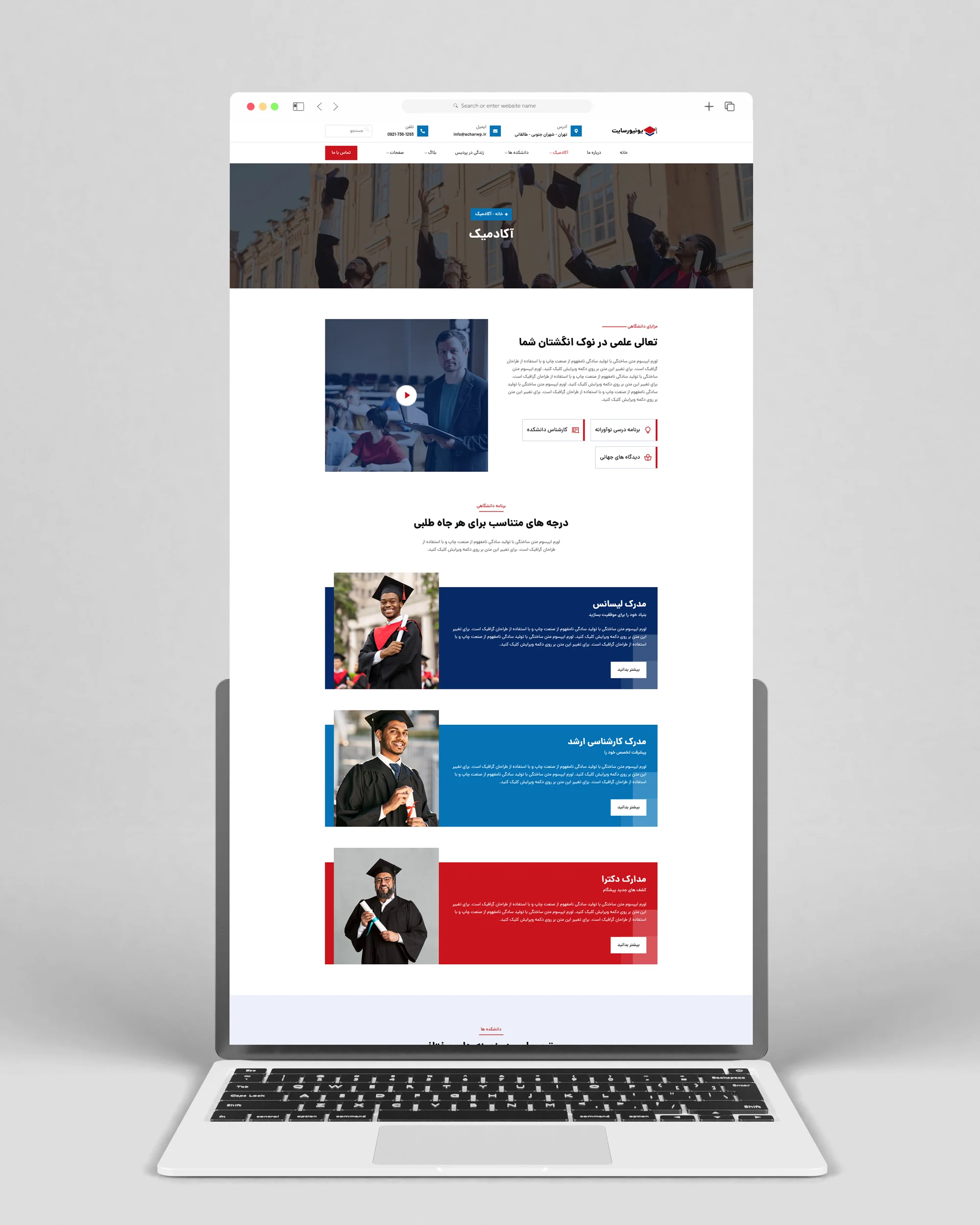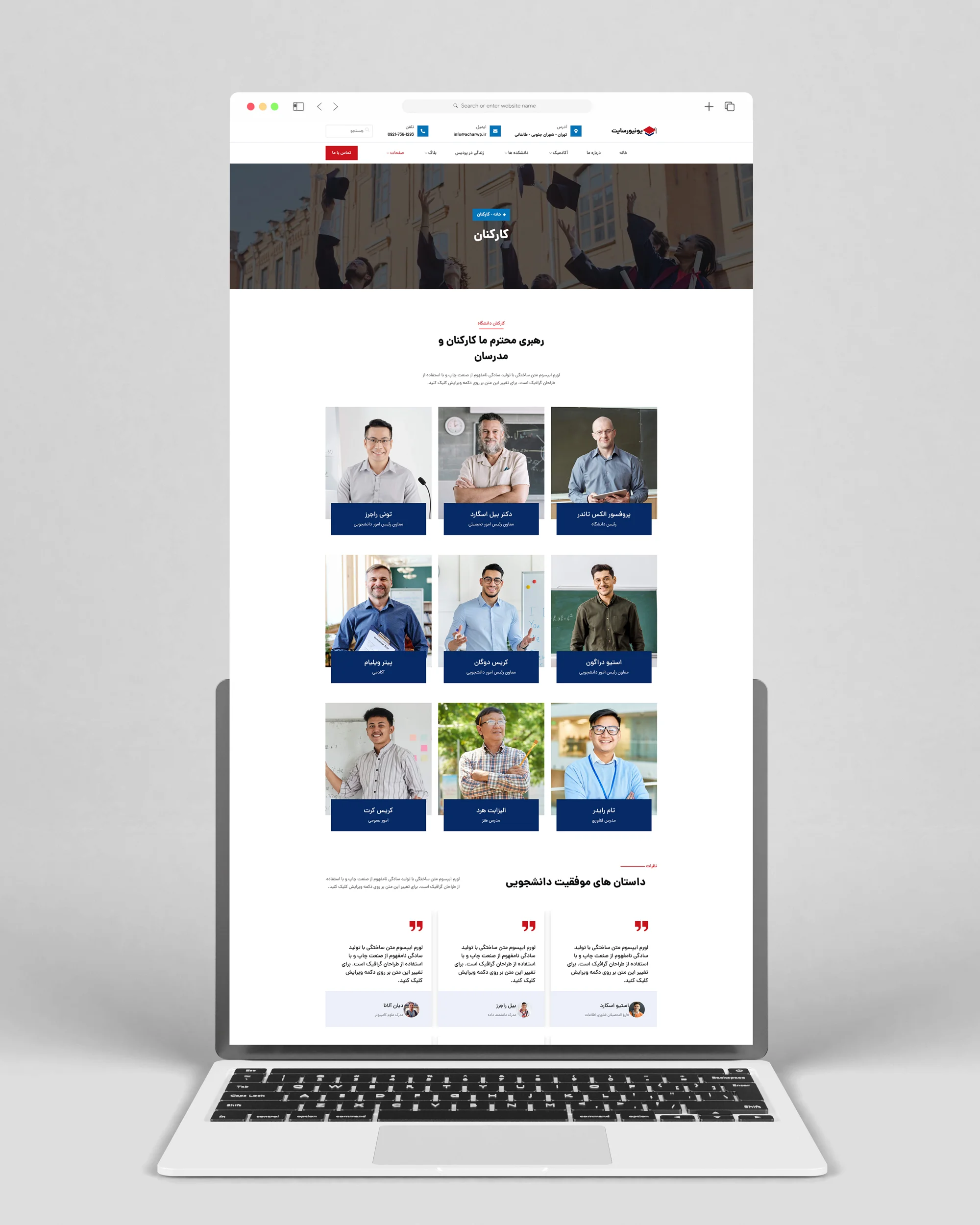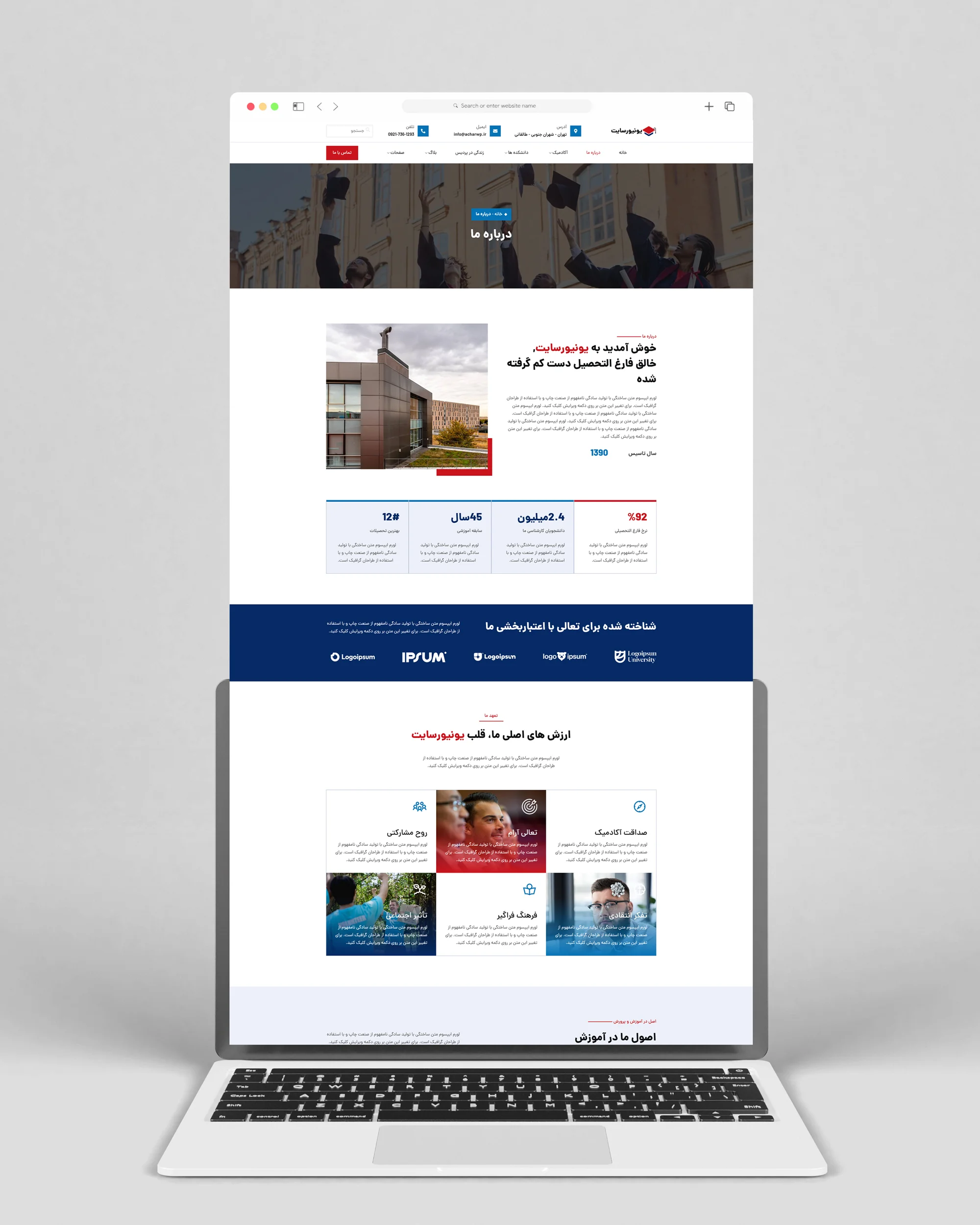 قالب یونیورسایت با فونت فارسی زیبای دانا طراحی شده است که در کنار رنگبندی چشمنواز و رسمی، جلوهای آکادمیک و درعینحال مدرن به سایت میبخشد.
