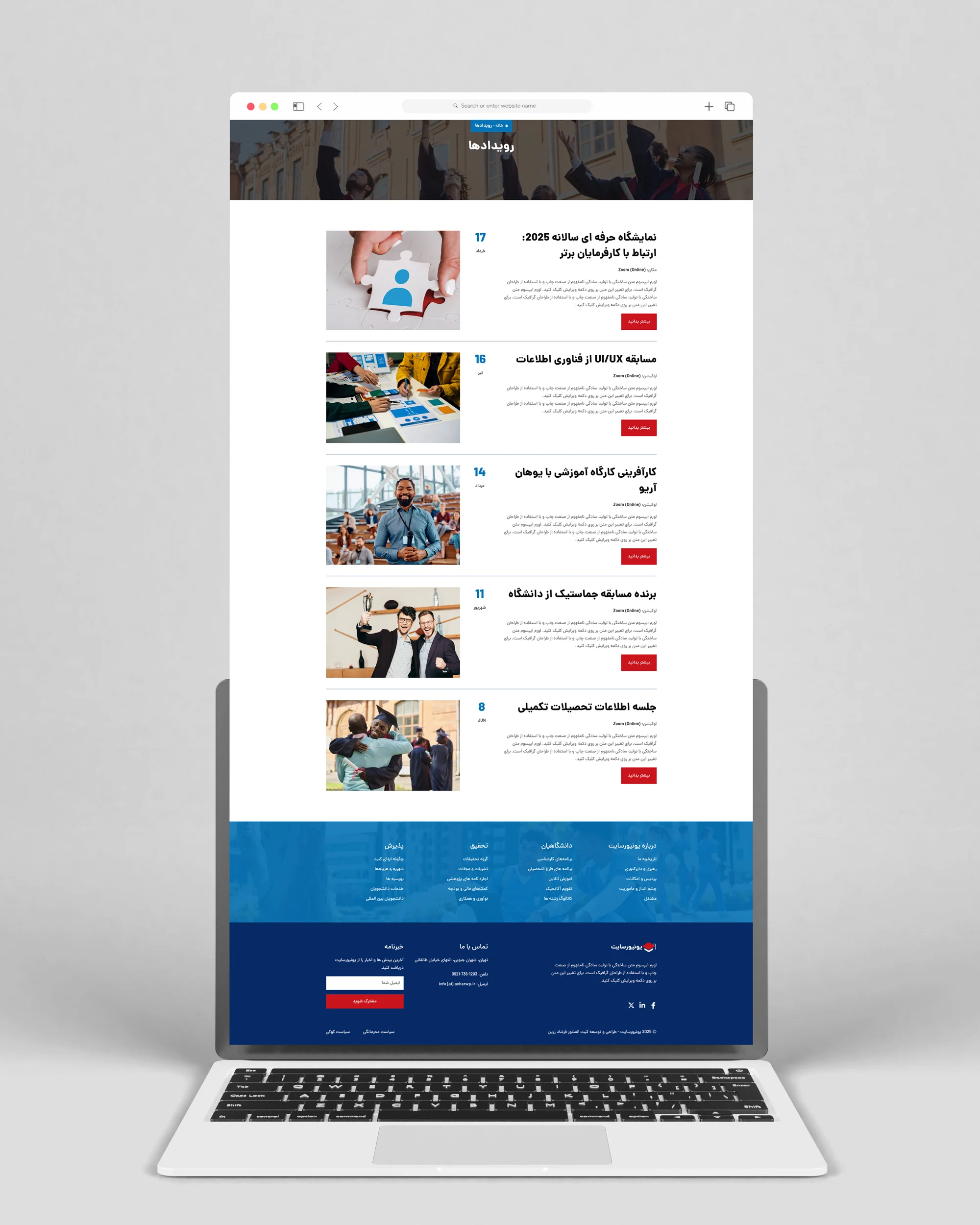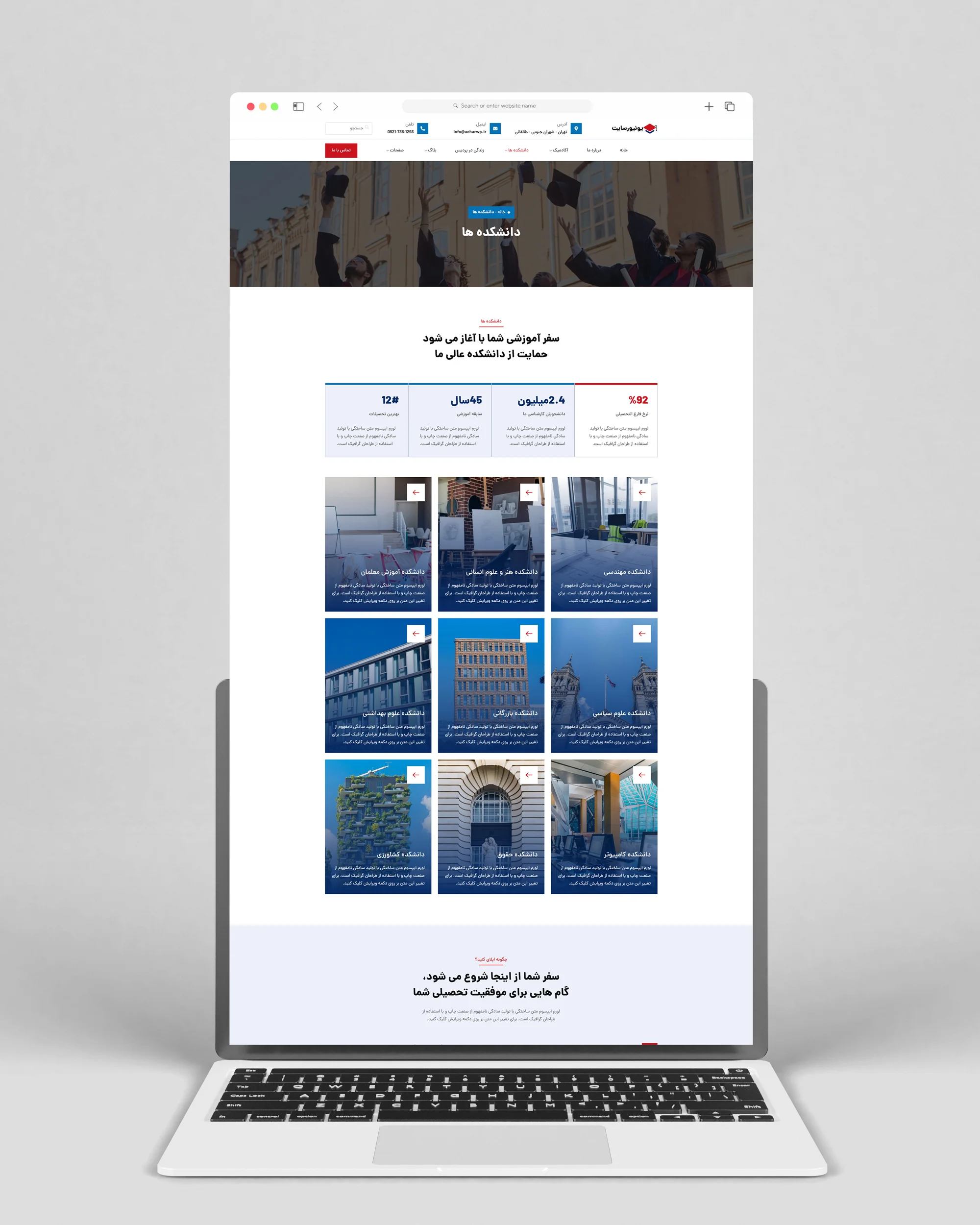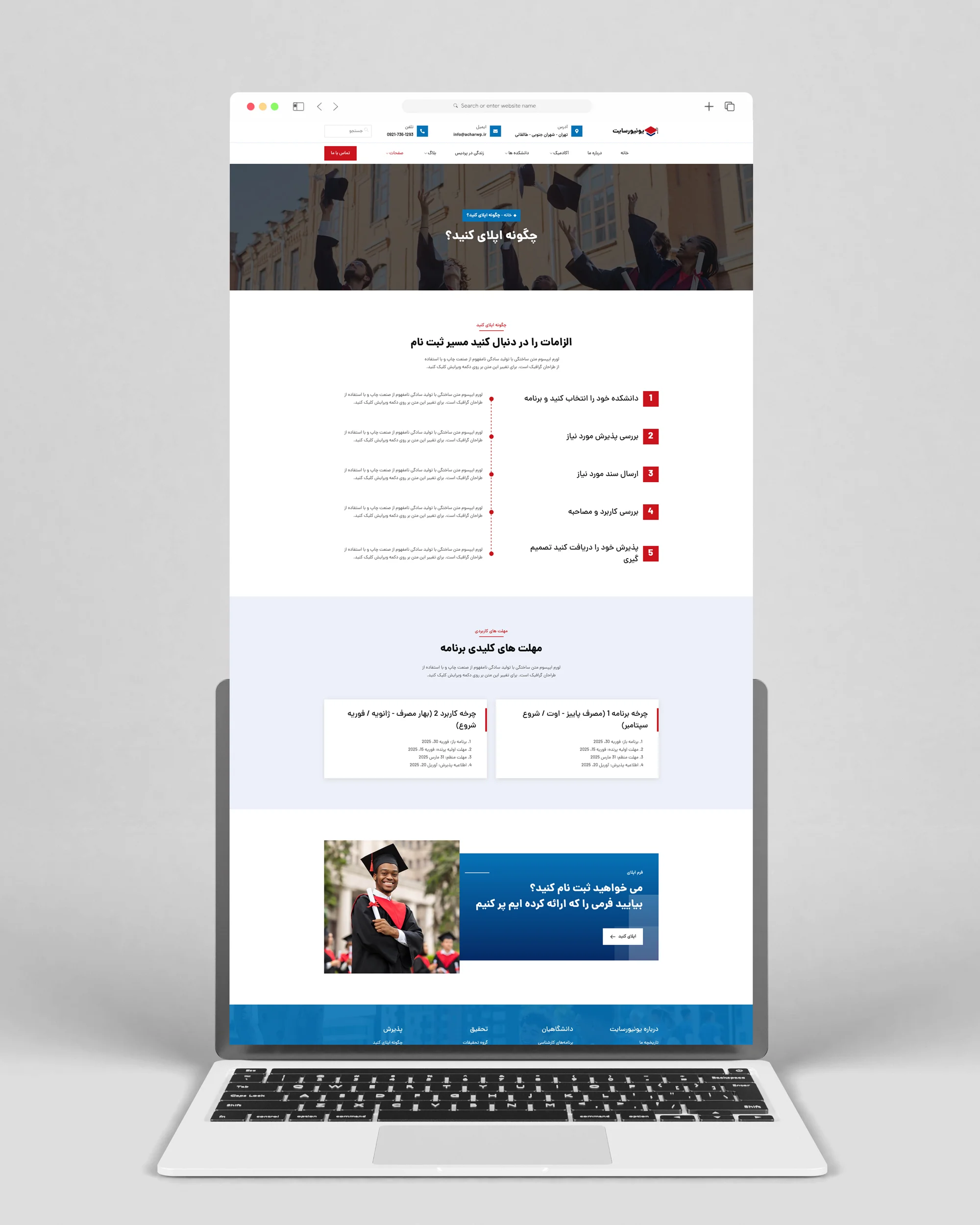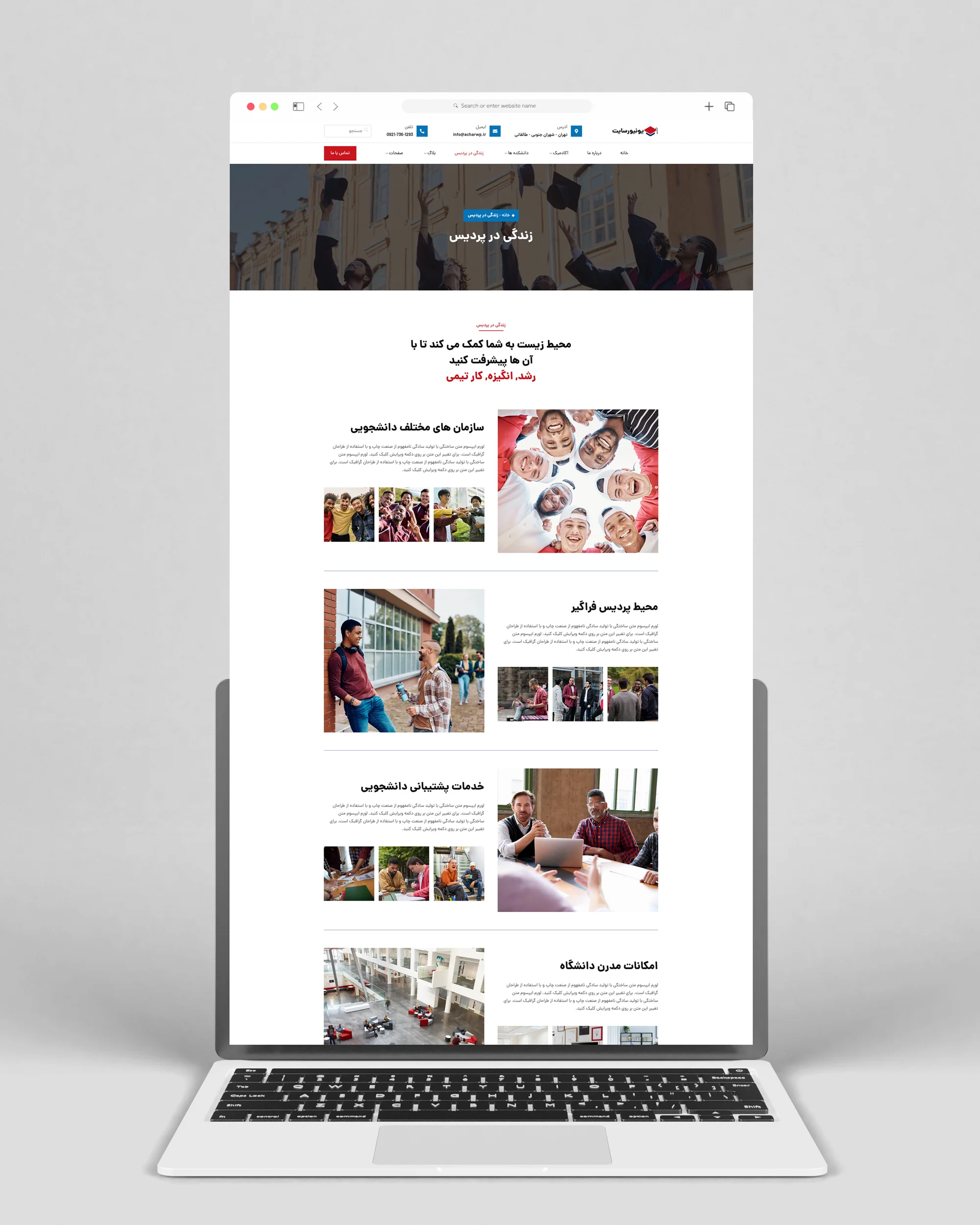 قالب یونیورسایت با فونت فارسی زیبای دانا طراحی شده است که در کنار رنگبندی چشمنواز و رسمی، جلوهای آکادمیک و درعینحال مدرن به سایت میبخشد.