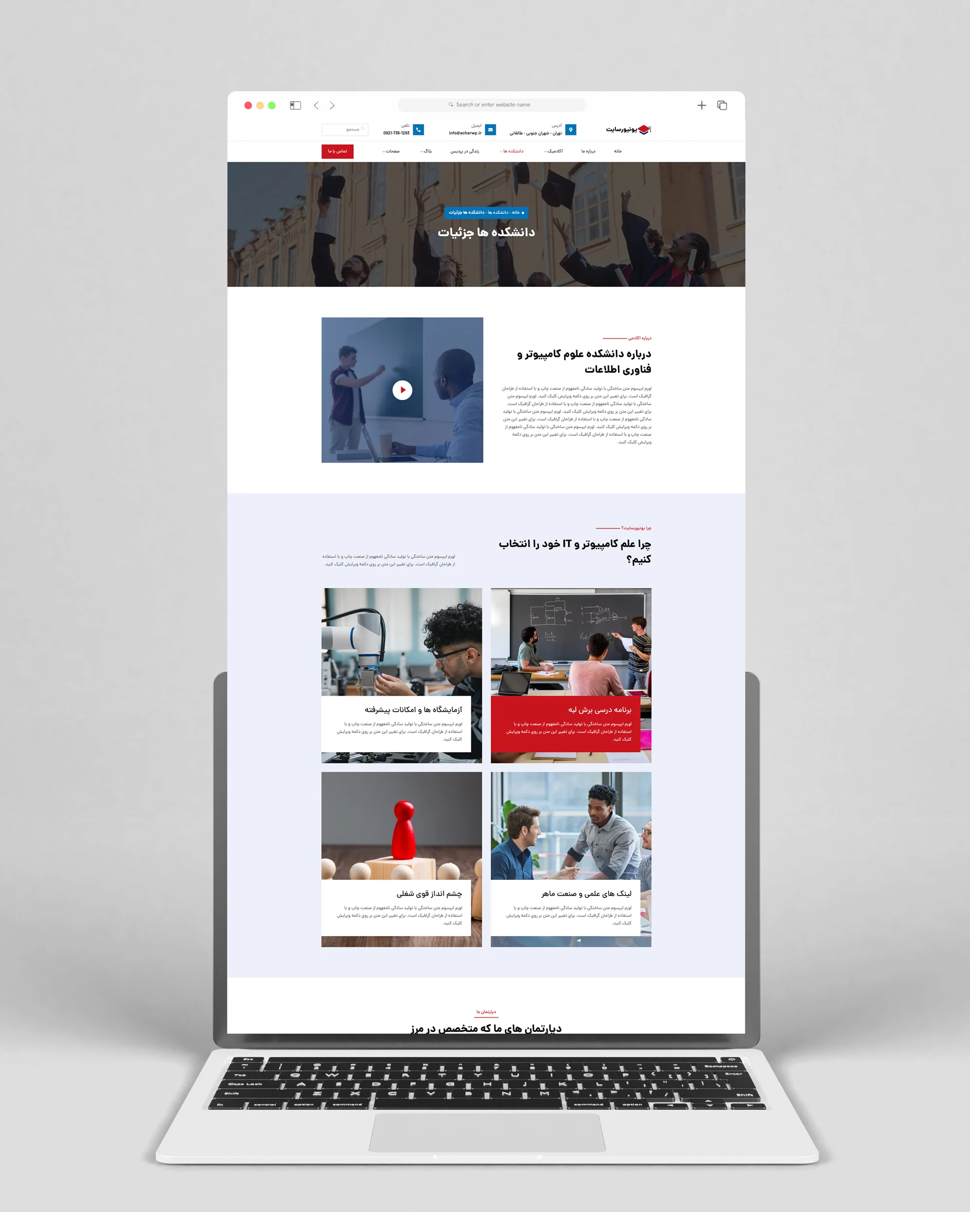 رنگ قرمز نماد انرژی، پویایی و انگیزهی پیشرفت در محیطهای آموزشی است و توجه بازدیدکننده را به بخشهای مهم مانند دکمهها و لینکهای اصلی جلب میکند.